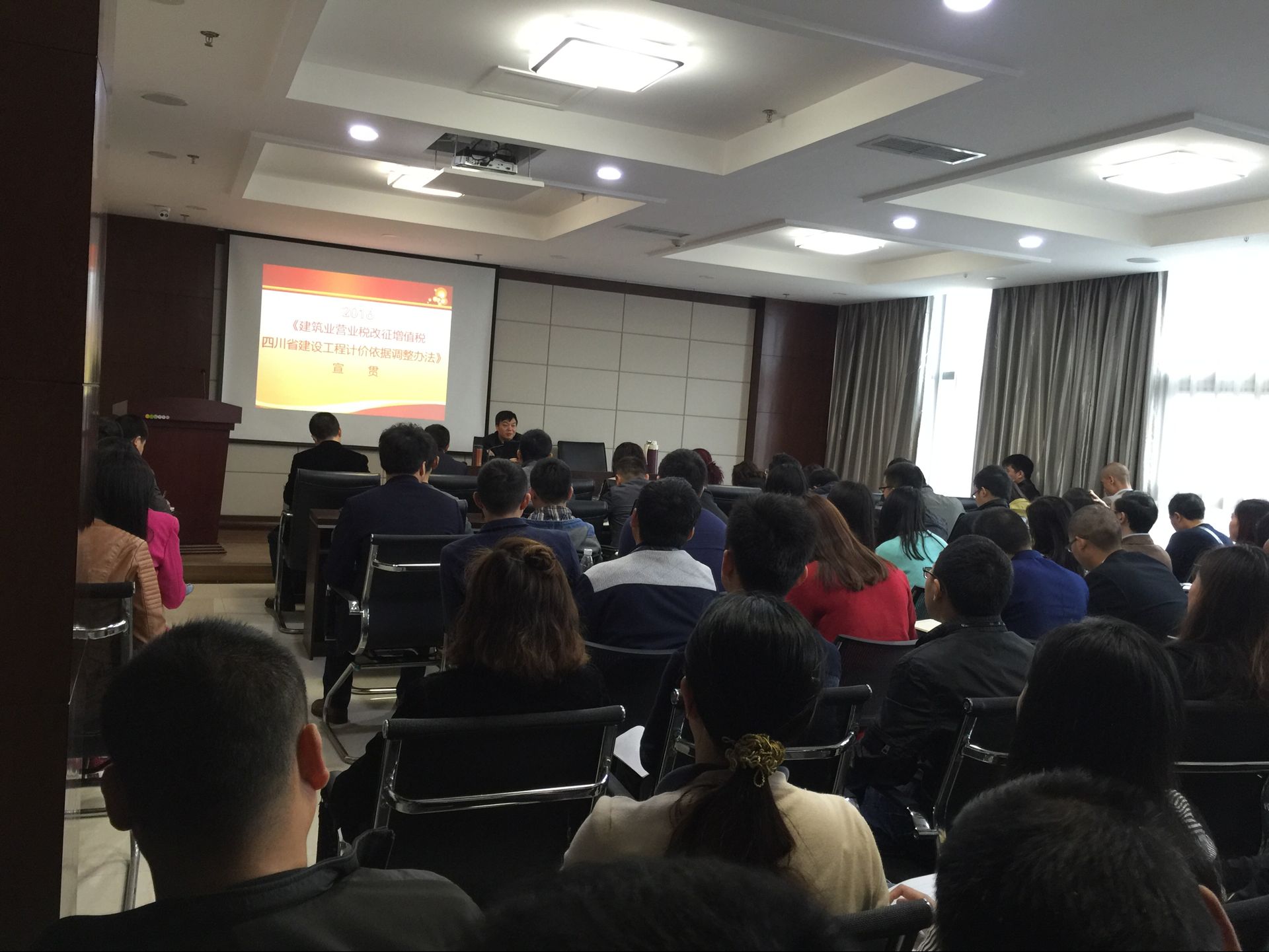 根据《四川省住房和城乡建设厅关于印发<四川建筑业营业税改征增值税四川省建设工程计价依据调整办法>的通知》(川建造价发[2016]349号)有关要求,为适应国家税制改革要求,满足建筑业营改增后建设工程计价需要,切实保障建筑业营改增顺利实施,便于工程造价管理机构及施工、工程造价咨询企业对建筑业“营改增”政策及配套措施的理解,我公司邀请专业技术领导来我单位举办 “营改增”专题学习会。